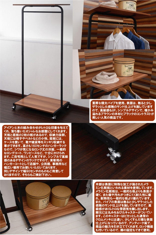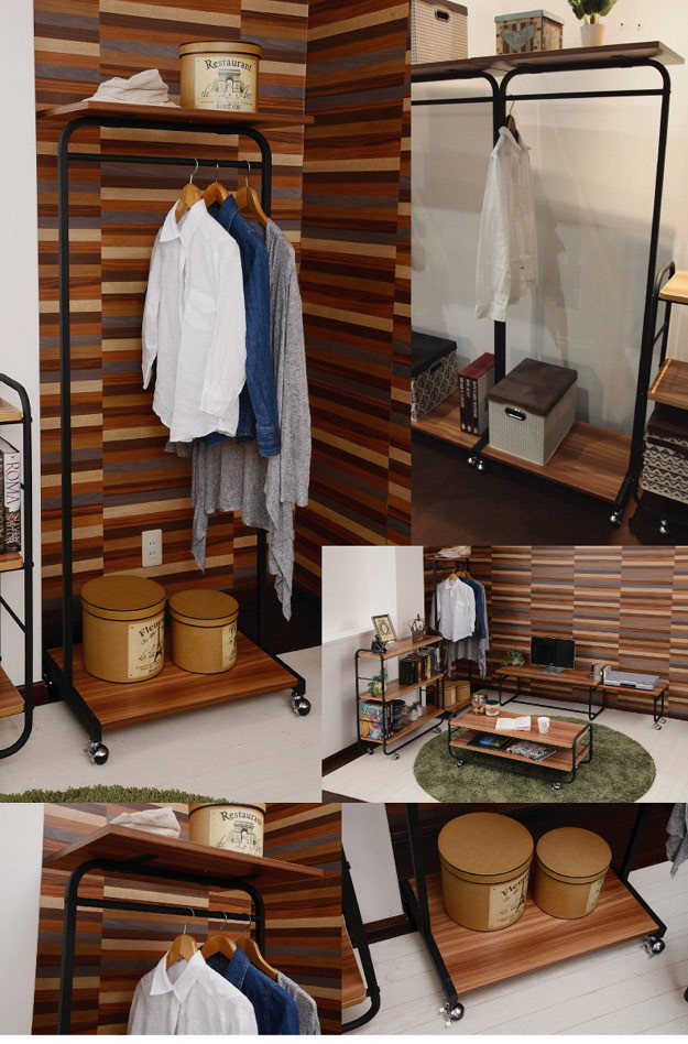 ハンガーラック幅60 オープンラック 本棚 収納家具 シェルフ アイアン パイプ デザイン ブラウン