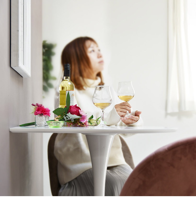 一輪の花を思わせる優美で柔らかなフォルムが特徴で清らかな曲線が柔らかな印象と優美さを感じさせる丸テーブルです。