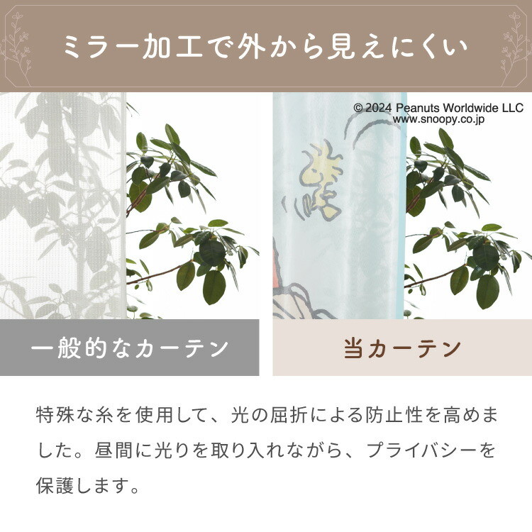 スヌーピー絵羽レースカーテン 2枚組 100×198cm UVカット 洗える 洗濯 プライバシー 目隠し カーテン