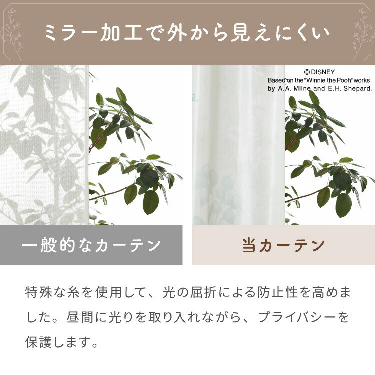 プーさん絵羽レースカーテン 2枚組 100×148cm UVカット 洗える 洗濯 プライバシー 目隠し フック付き