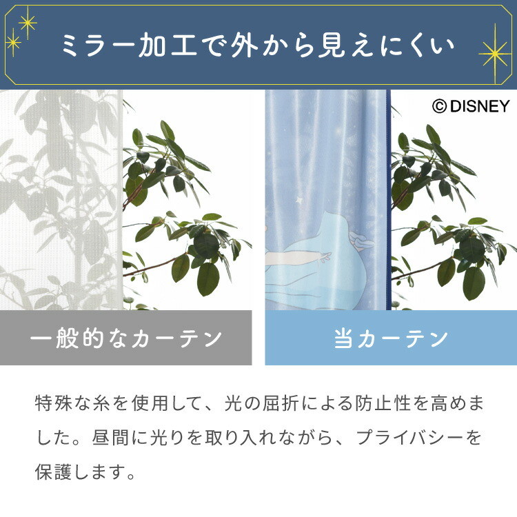 ピーターパン絵羽レースカーテン 2枚組 100×176cm UVカット 洗える 洗濯 プライバシー 目隠し フック付き