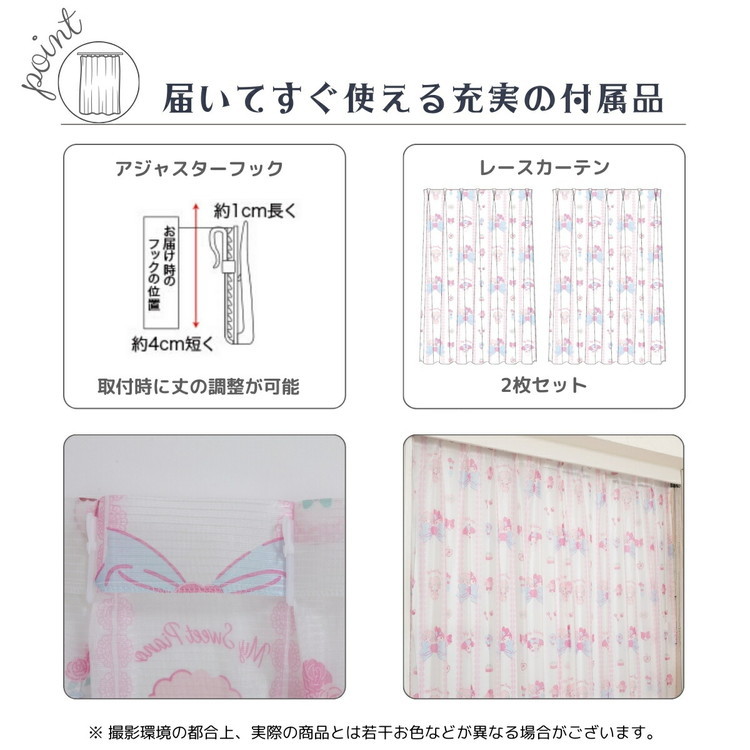 マイメロディ&マイスウィートピアノ レースカーテン 2枚セット 幅100×丈176cm UVカット 外から見えにくい