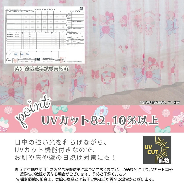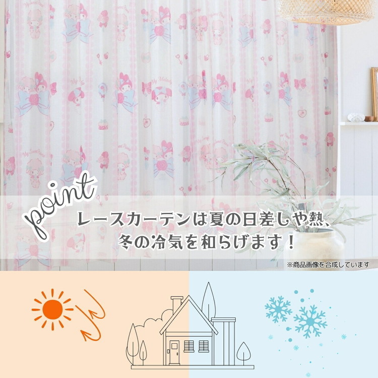 マイメロディ&マイスウィートピアノ レースカーテン 2枚セット 幅100×丈198cm UVカット 外から見えにくい