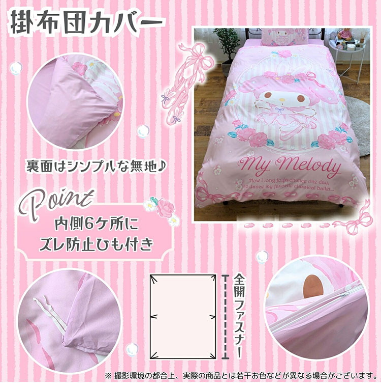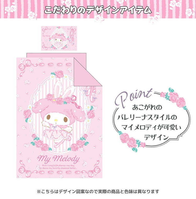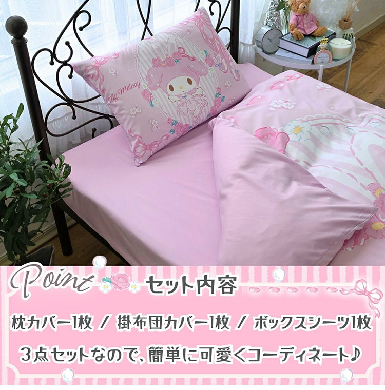 マイメロディの世界観をたっぷり楽しめるシングルサイズの布団カバー3点セット。