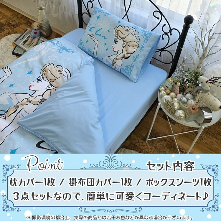 アナと雪の女王 エルサ 布団カバー3点セット シングル Disneyzone Disney 丸洗い可 寝具