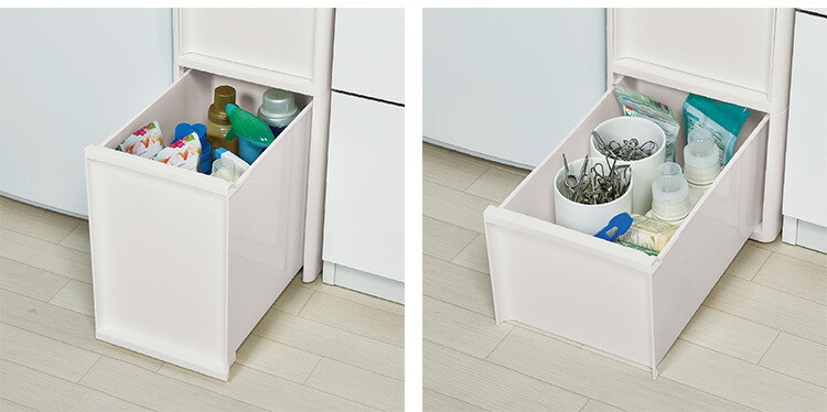隙間収納 ミドルストッカー 幅26cm リセスタイル 日本製 引出し4段 S2段/M1段/L1段 キャスター付き