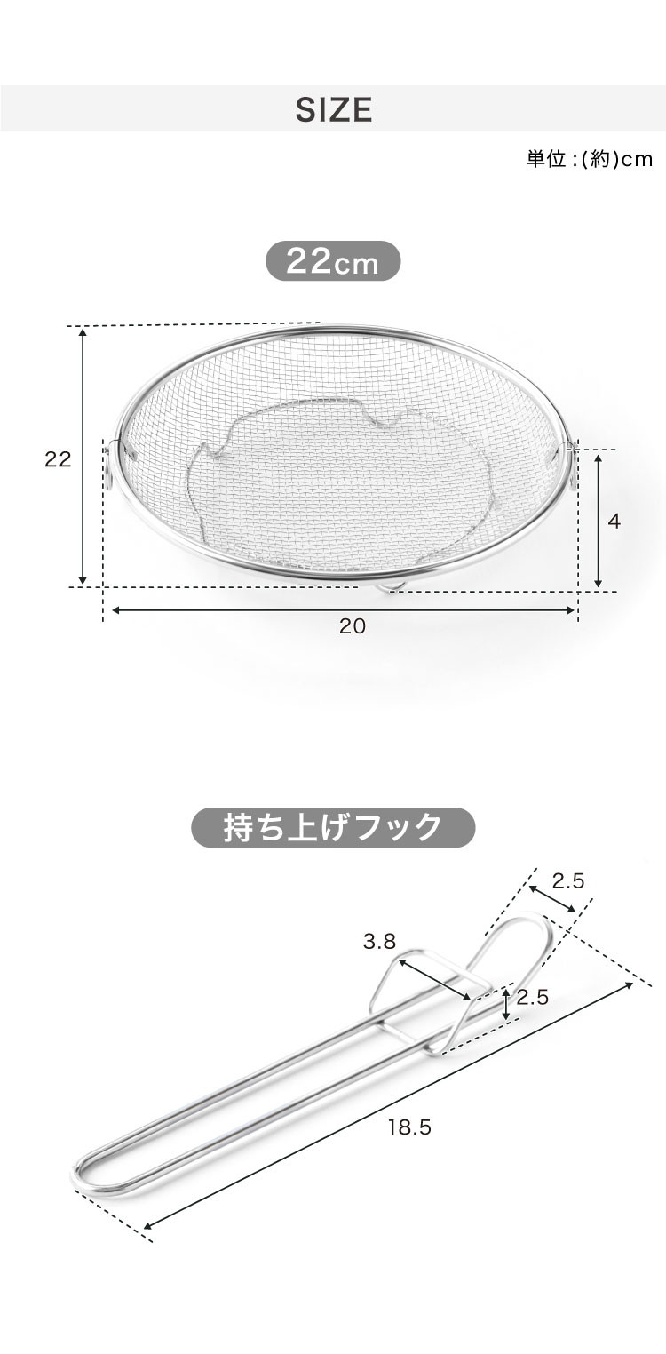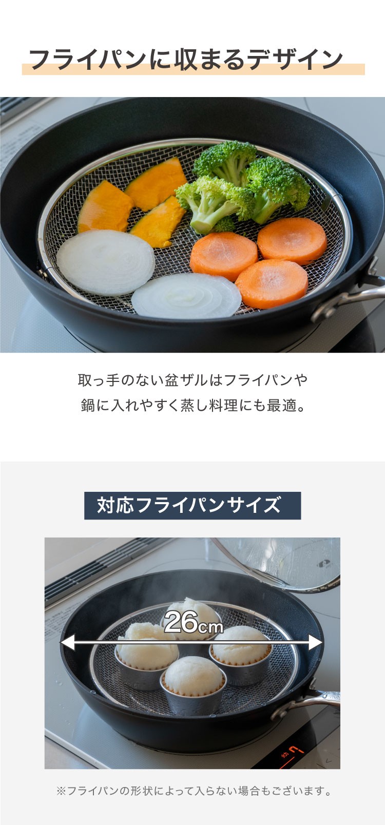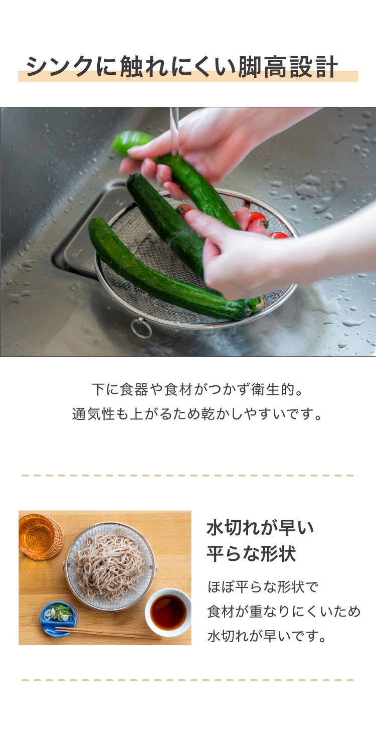 食器の水切りから麺料理、揚げ物、お鍋の具材、蒸し料理まで…幅広くお使いいただけます。