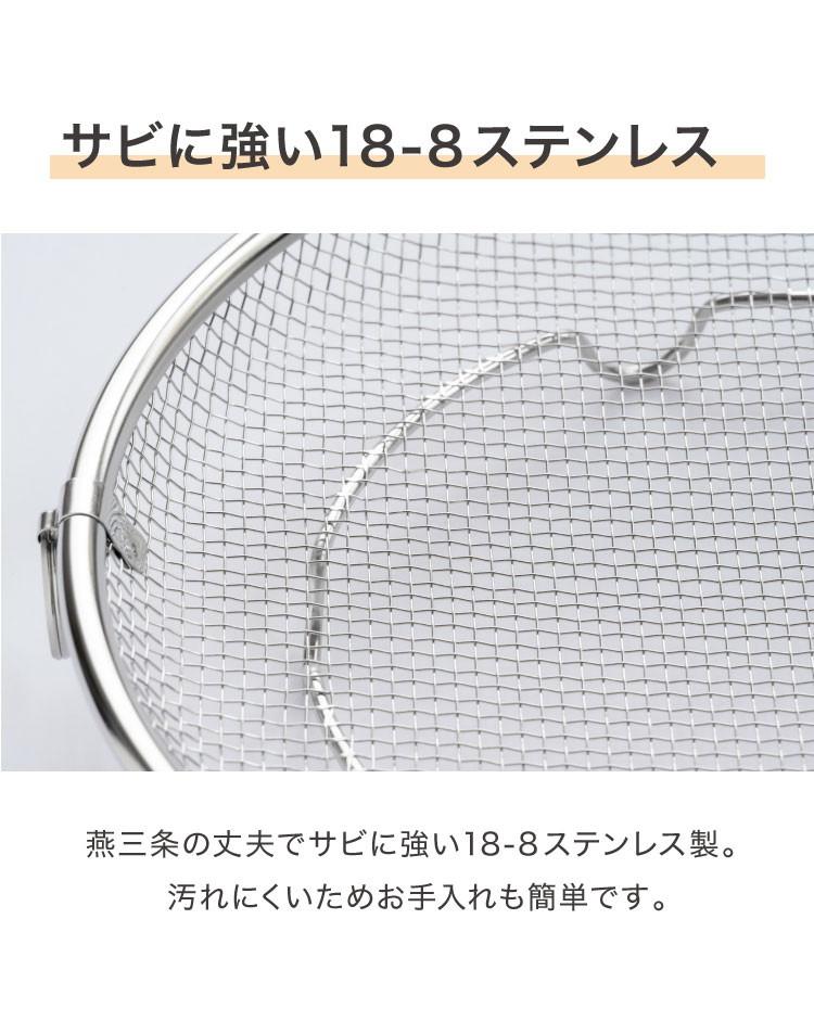 日本製 燕三条 すっきり暮らす 盆ザル 22cm 持ち上げフック付き 蒸し料理 せいろ ステンレス 食洗機対応 水切り 油切り ざる