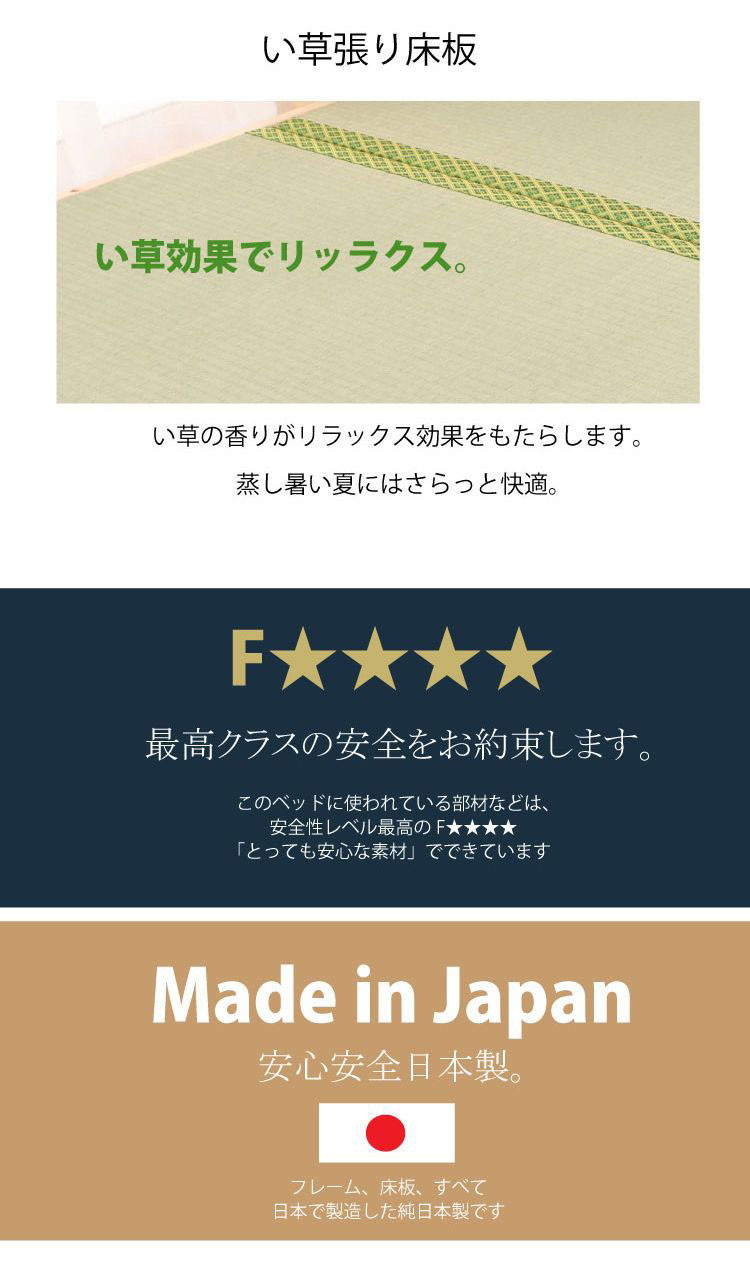 国産のヒノキ材を贅沢に使用したローベッド。金具でピッタリ連結できるので家族で川の字で寝る事ができます。イグサ床板タイプ