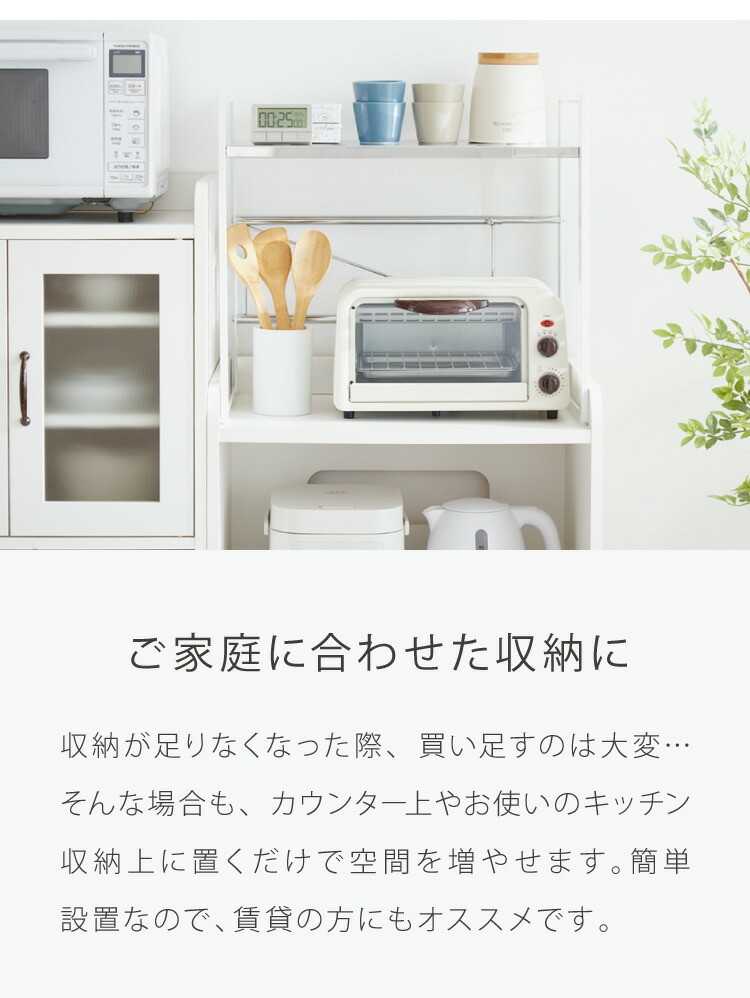 レンジやオーブントスーターなどキッチンに置く小型家電周りが収納スペースに。