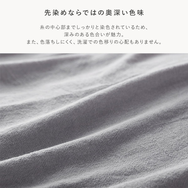 掛布団カバー:8か所スナップボタン、210cm隠しファスナー、先染め洗いざらし