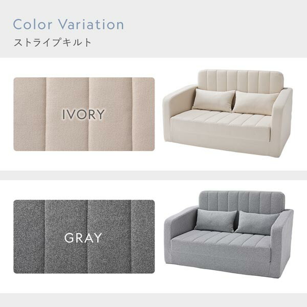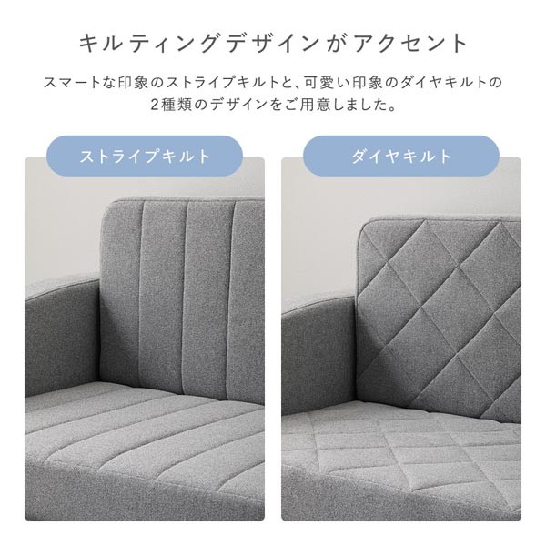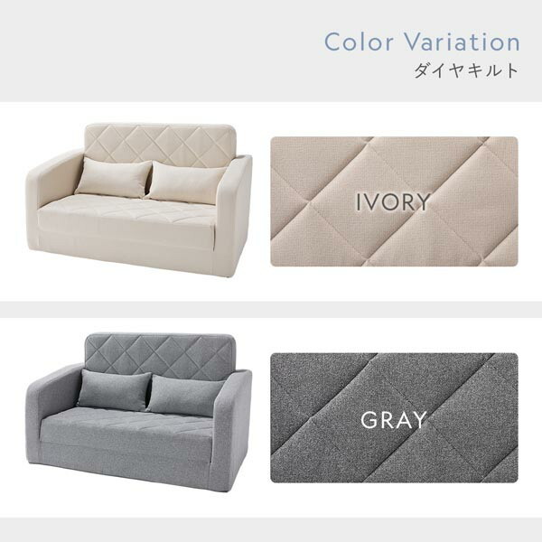 3WAY ソファベッド 2人掛け グレー ダイヤキルト 肘付き 高反発ウレタン 体圧分散 寝具 リビング
