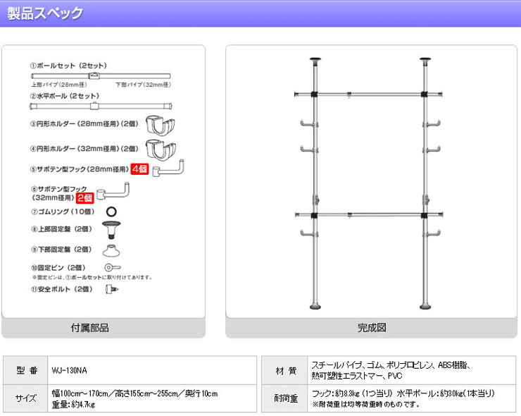 材 質 スチールパイプ、ゴム、ポリプロピレン、ABS樹脂、熱可塑性エラストマー、PVC