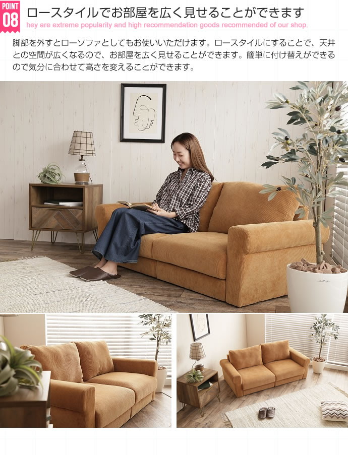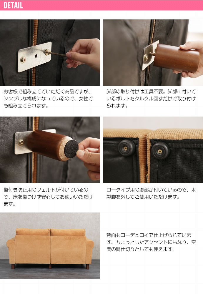 ソファ ソファー ローソファー ローソファ 2人掛け 2P 二人掛け コーデュロイ リビングソファー