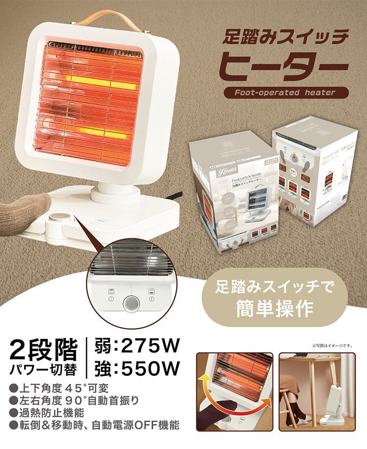 足踏みスイッチヒーター 電気ストーブ 小型 過熱保護 転倒オフ 足元暖房 2段階パワー切替 HDL-5826 ヒロコーポレーション