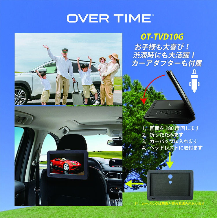 ポータブルDVDプレイヤー ポータブルテレビ 10.1インチ バッテリー内蔵 フルセグDVDプレイヤー OT-TVD10G OVER TIME