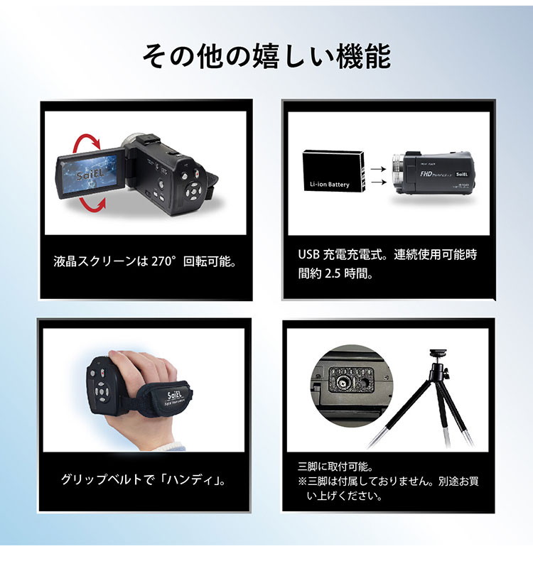 ビデオカメラ ハンディカメラ FHD 1920x1080P 500万画素 3インチディスプレイ サイエル SLI-IHC30C