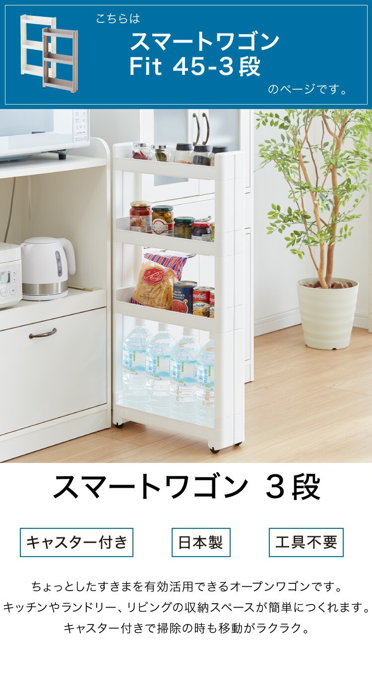 【すきま収納】 幅12.5cm スマートワゴン Fit 45 3段 かんたん組立式 コロ付き 隙間に収まる 不動技研 キャスター付き リビング 壁面収納 アイデア収納 日本製 不動技研 グレー