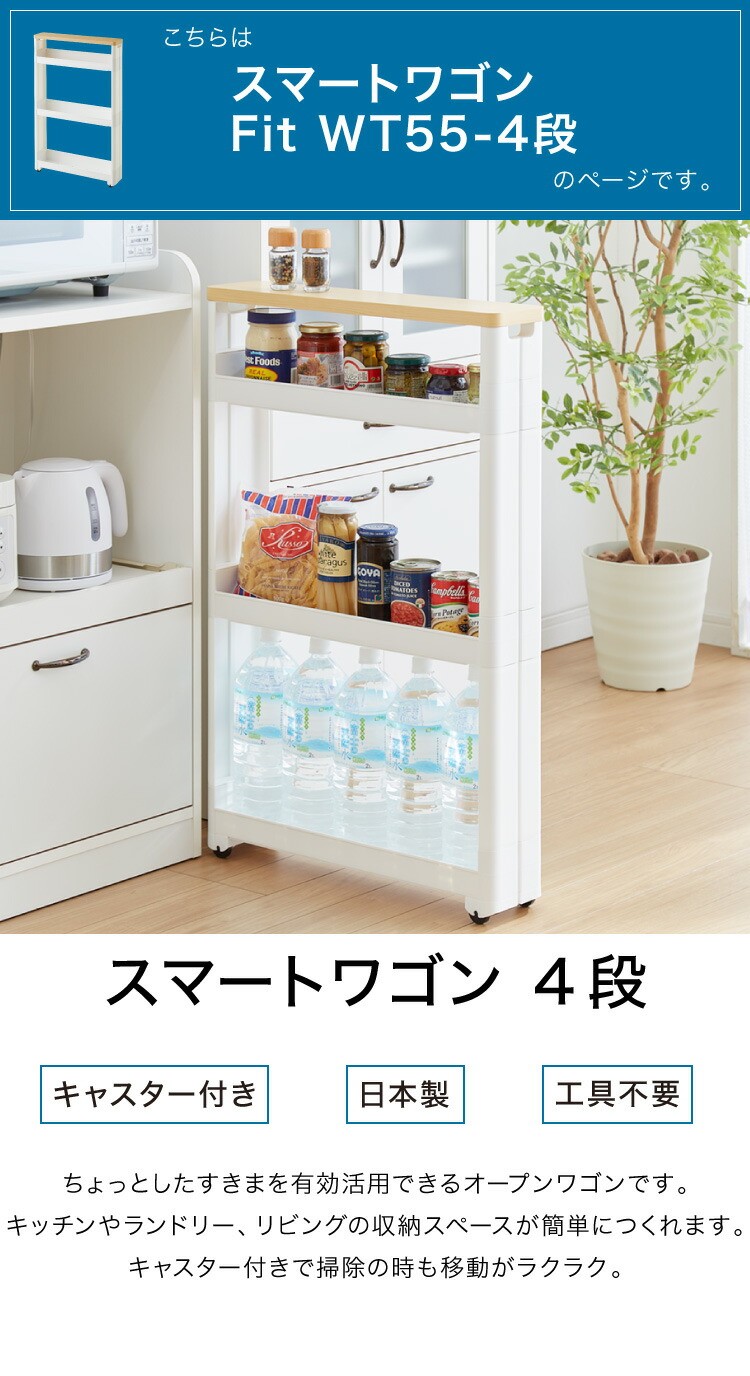 【すきま収納】 幅12.5cm スマートワゴン サニタリー 4段 Fit WT55 F2542 木天板 かんたん組立式