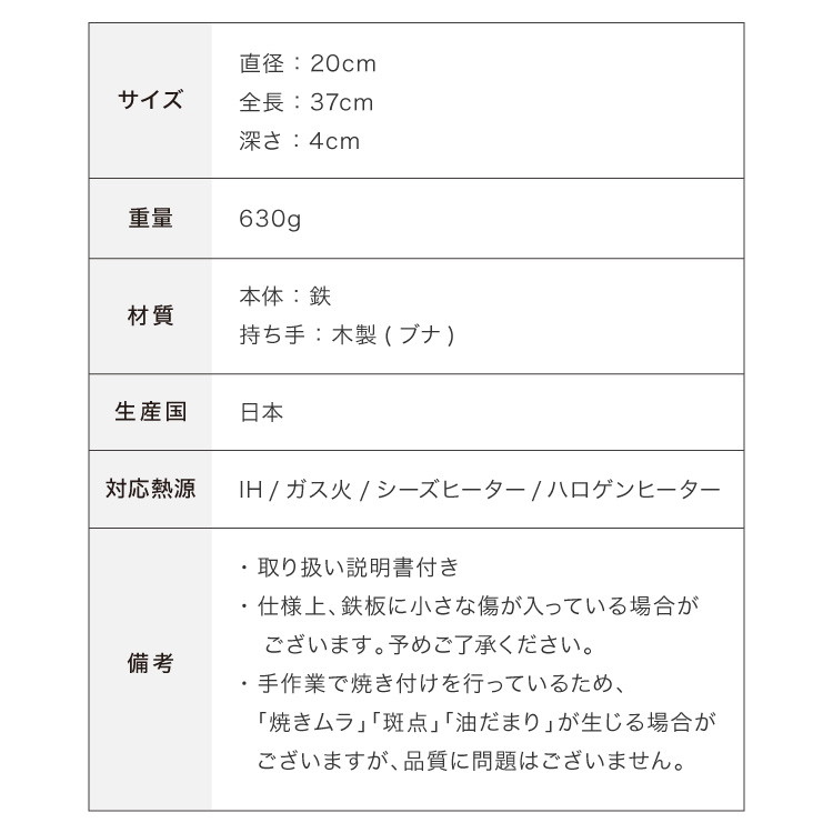 ※仕様上、鉄板に小さな傷が入っている場合がございます。予めご了承ください。