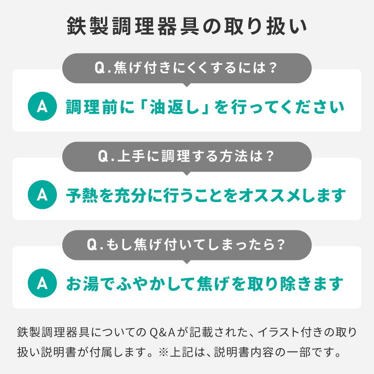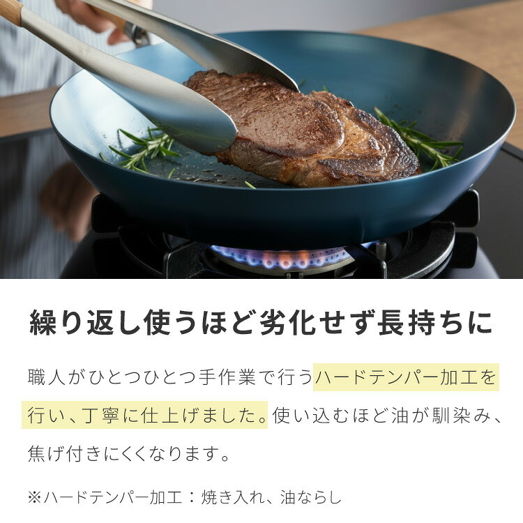 ※藤田金属のオリジナル技術ハードテンパー加工を使用。ハードテンパー加工は鉄本来の難点(コゲる、サビる)を改善した加工方法です。