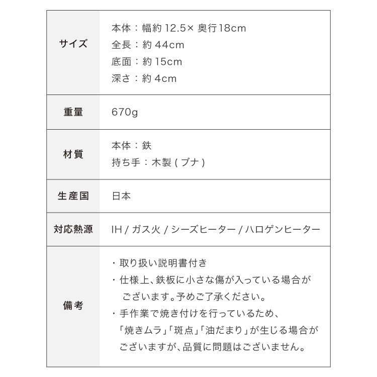 ※仕様上、鉄板に小さな傷が入っている場合がございます。予めご了承ください。