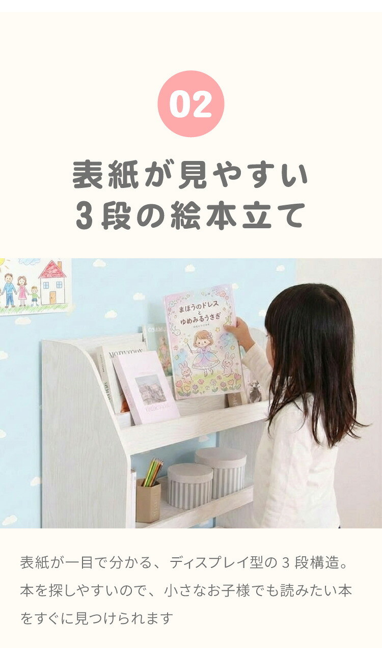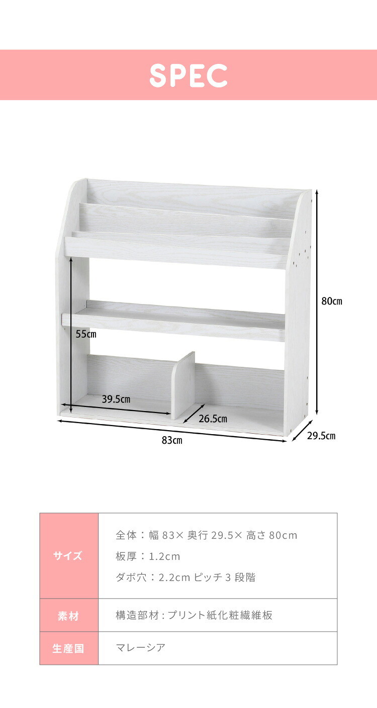 絵本ラック コンパクト 幅83cm 木製 子ども部屋 収納 ラック ブックラック 可動棚 収納棚 ブックシェルフ 収納ラック オークホワイト