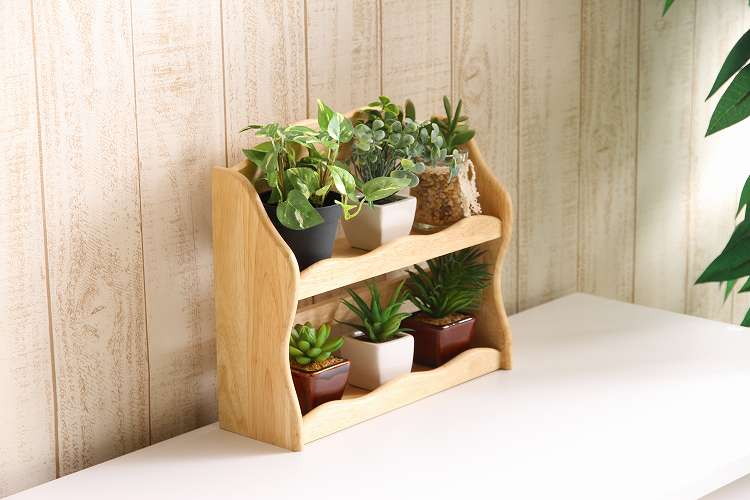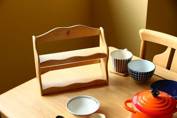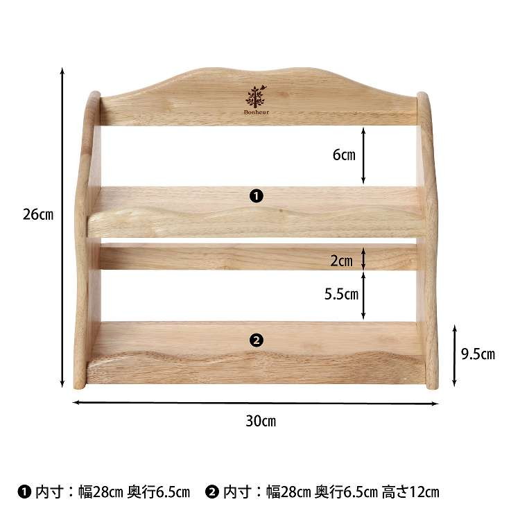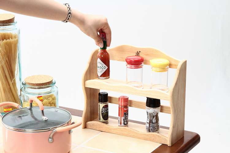 2段でたっぷり収納!木製スパイスラックワンポイントのマークがかわいいシンプルなデザインで、キッチンに自然と馴染みます。幅30×奥行9.5cmの2段タイプで、塩やコショウなどよく使う調味料をまとめて収納できます。取り出しやすいオープンタイプ。調味料が倒れないようにストッパーが付いています。コンロ脇にも置きやすい、奥行9.5cmのスリムサイズです。リビングや玄関の小さな観葉植物や小物置きとしてもお使いいただけます。優しく穏やかな木目、滑らかな触り心地のラバーウッドを使用。天然木の温もりを感じられるキッチンツールです。
