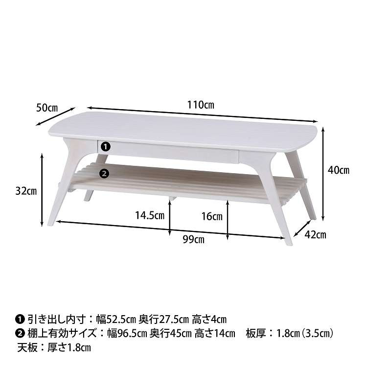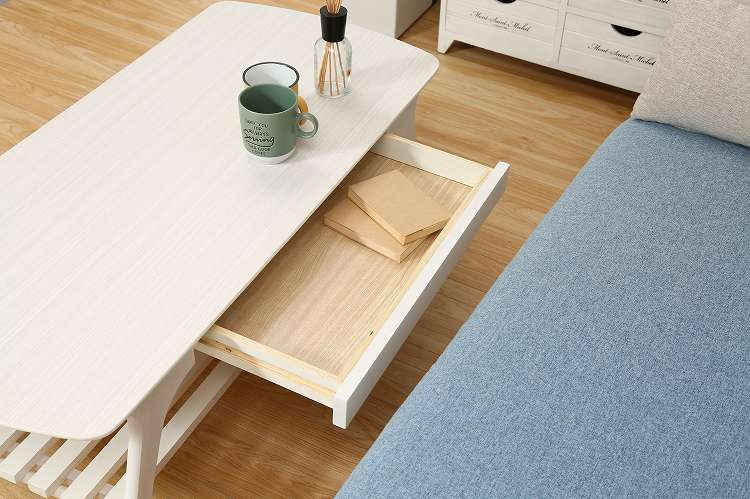 引出し付きセンターテーブル WH ローテーブル 引き出し 棚付き センターテーブル リビング