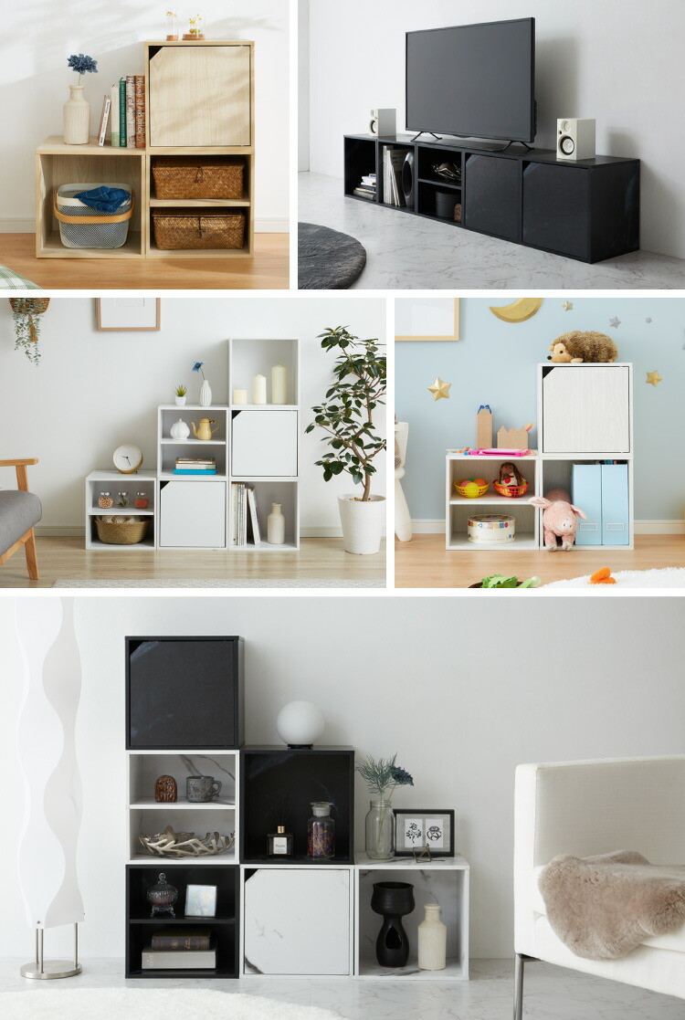 アイデア∞の自由な収納! キューブボックス カラーボックス 棚 ディスプレイラック 大理石調ブラック オープンタイプ