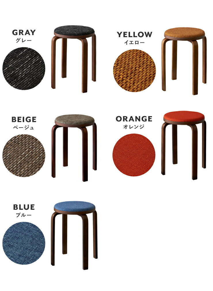 スタッキングスツール 同色6脚セット ファブリック 曲木 スツール 北欧 木製 木製スツール 省スペース ブルー