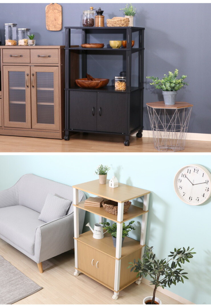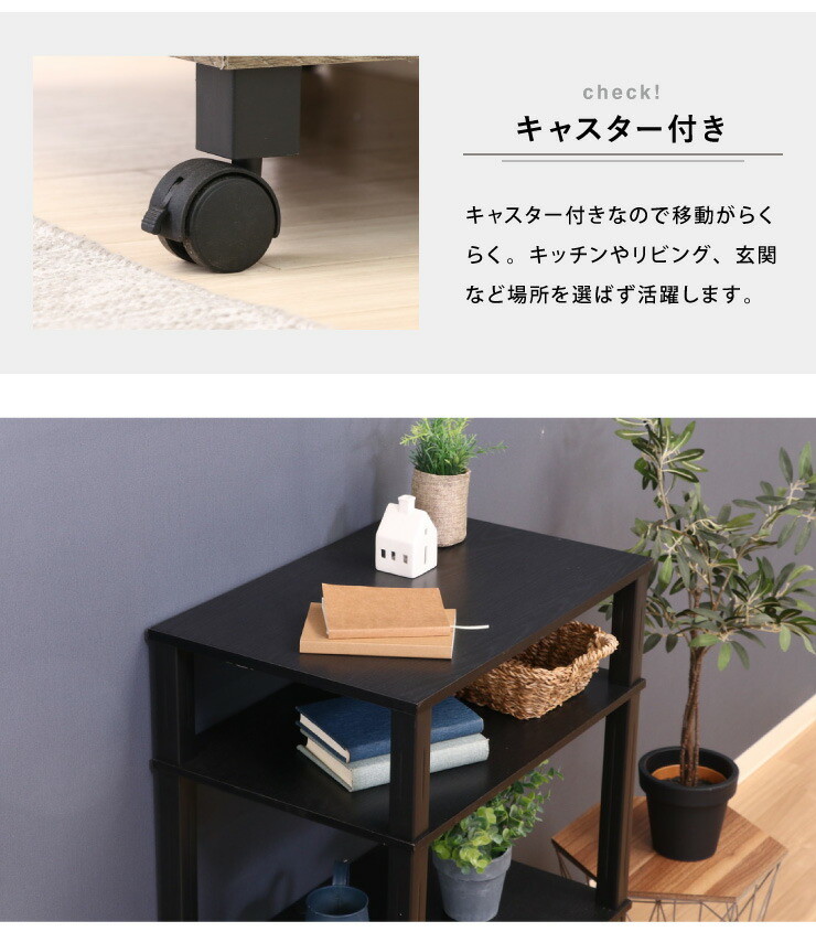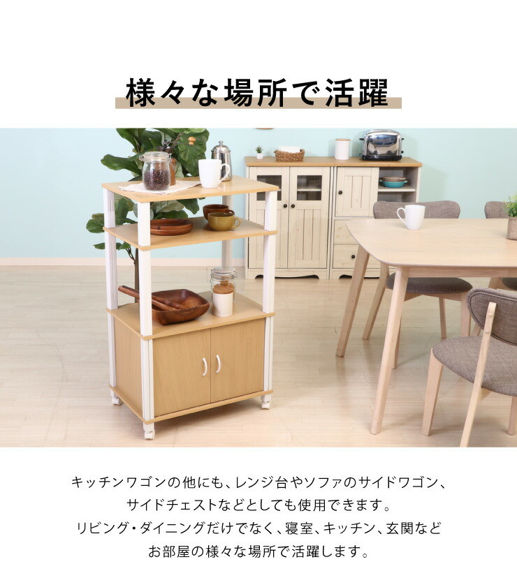 組立簡単 マルチワゴン キャスター付き レンジ台 キッチンワゴン 幅60 奥行40 高さ98 収納ボックス ナチュラル×ホワイト