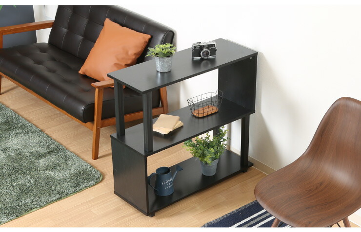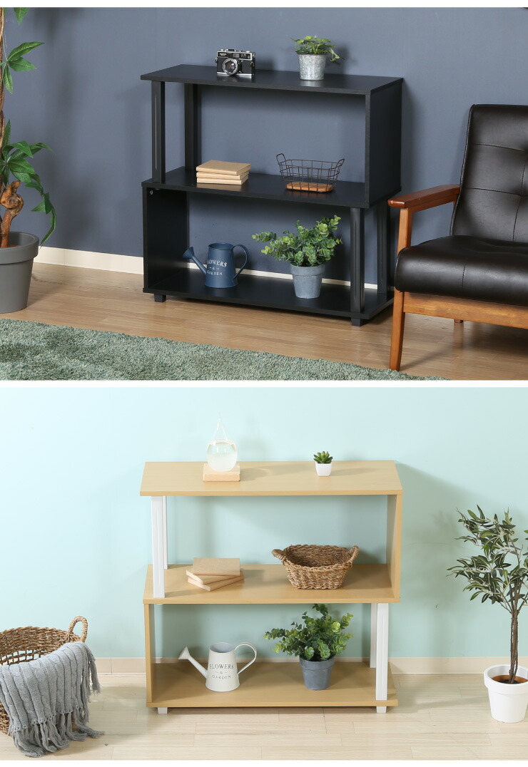 S字ラック オープンラック 2段 幅80 奥行30 ナチュラル×ブラック