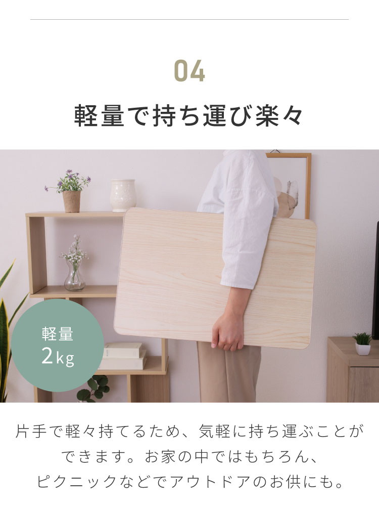 重量は2kgと片手で軽々持つことができるため、気軽に持ち運ぶことができます。