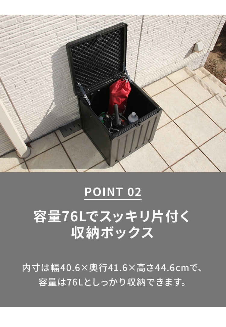 収納ボックス 76L 収納庫 取っ手付き 玄関 屋外 シンプルデザイン 木目模様 工具不要 組立簡単 施錠できる