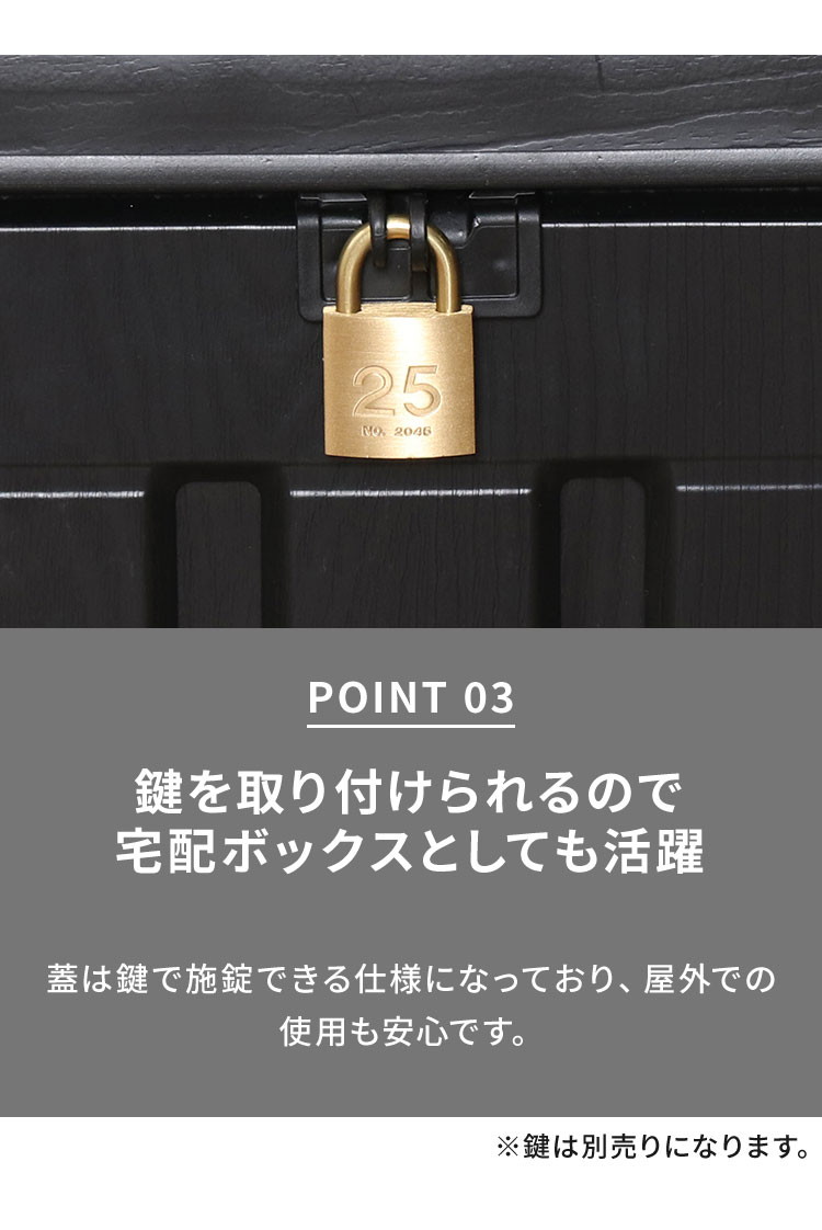 蓋は鍵で施錠できる仕様になっており、屋外での使用も安心です。