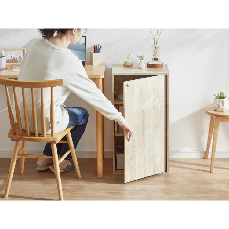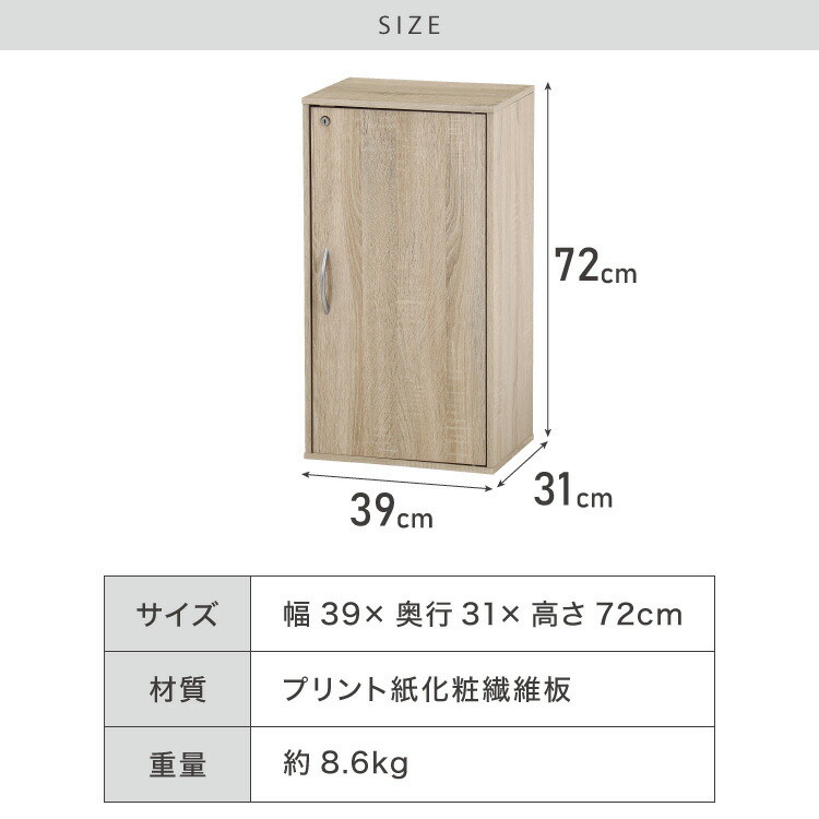 鍵付き収納ボックス 鍵付き 扉収納 可動棚 連結 本棚 シェルフ 収納家具 デスク ベッドサイド リビング ワンルーム オーク