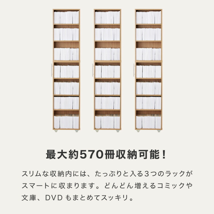本棚 スライド スリム 3列 大容量 キャスター付き スライド本棚 省スペース 収納ラック ホワイト