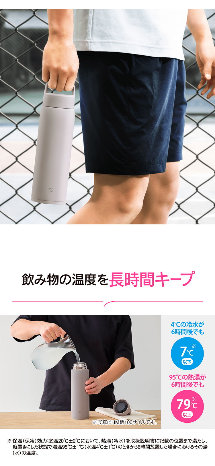 ステンレス真空2重のまほうびんだから、保温・保冷能力が高い。