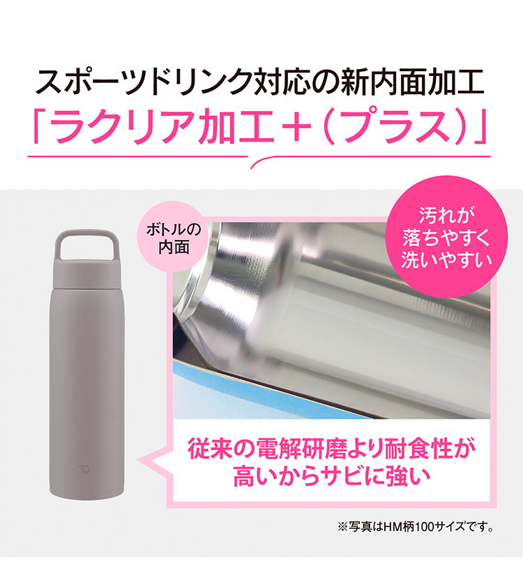 ボトル内面は耐食性が高くサビに強い。さらに、汚れが落ちやすく洗いやすいから毎日のお手入れがカンタンです。