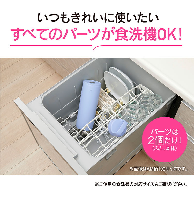 本体もふたもまるごと洗える食器洗い乾燥機対応で、いつでも清潔に。洗う手間が省けて便利です。