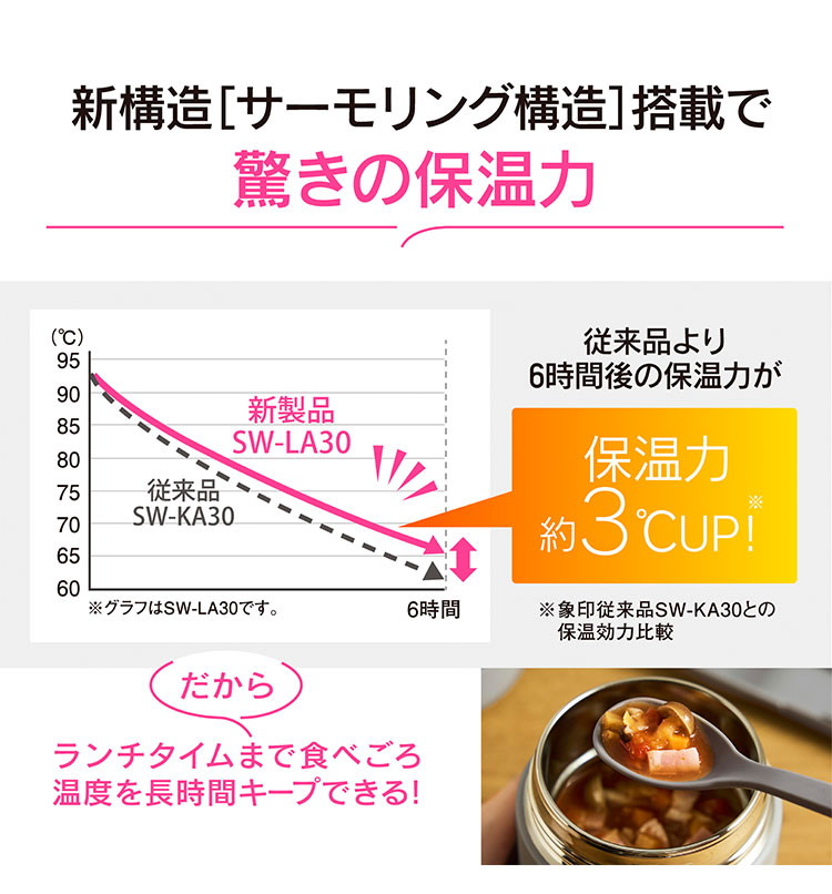 ・象印の独自技術「サーモリング構造」で保温力がさらにアップ!