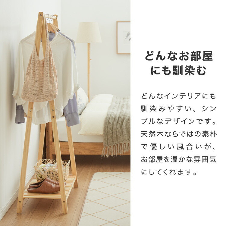 木製ハンガー棚付き 幅75cm 奥行38cm 高さ147.5cm ハンガーラック 棚付き 組立式 天然木 ナチュラル