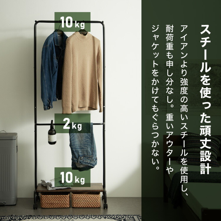 キャスター付き2段ハンガーラック