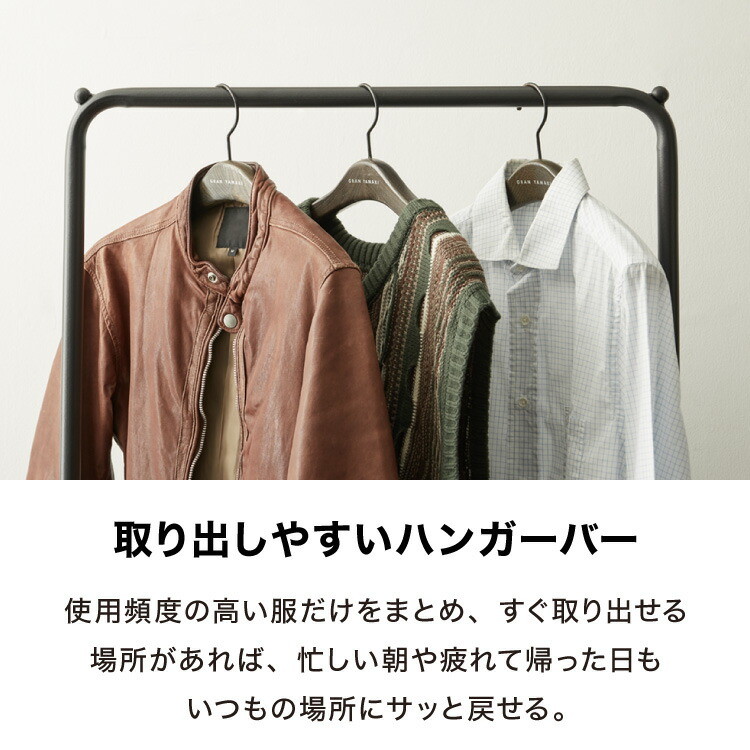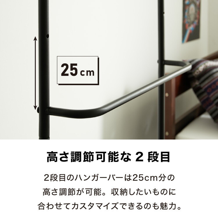 ・真ん中のハンガーバーは2段階で調節できるためかけるものに合わせて調整できます