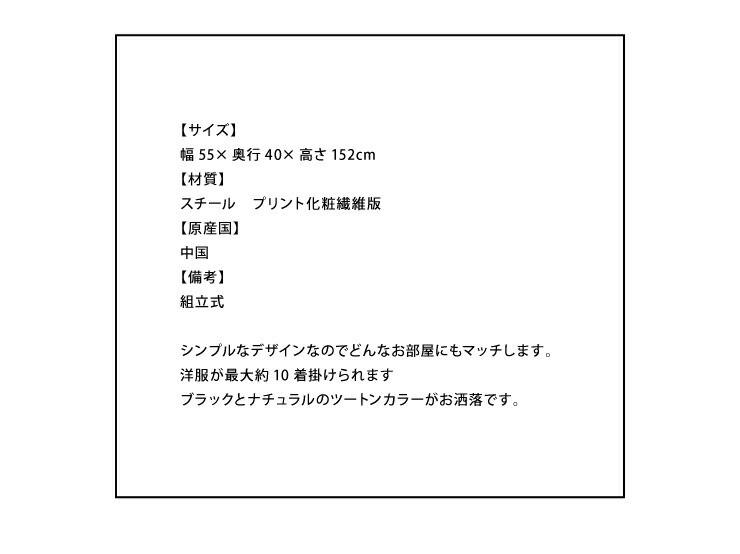 ハンガーラック おしゃれ 幅55cm 奥行40cm 高さ152cm Lタイプ 組立式 ブラック ナチュラル シンプル