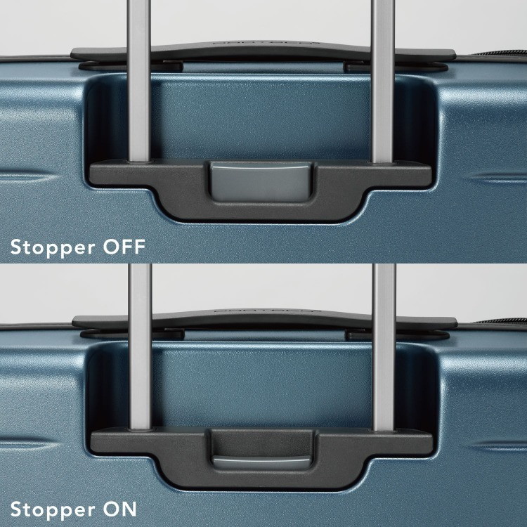 ワンタッチで車輪を固定できる「キャスターストッパー」を新搭載。電車・バス・傾斜のある場所でもスーツケースが勝手に動く心配がなく、移動時のストレスを軽減します。機内や出張移動の多いシーンでも頼れる安心の機能です。