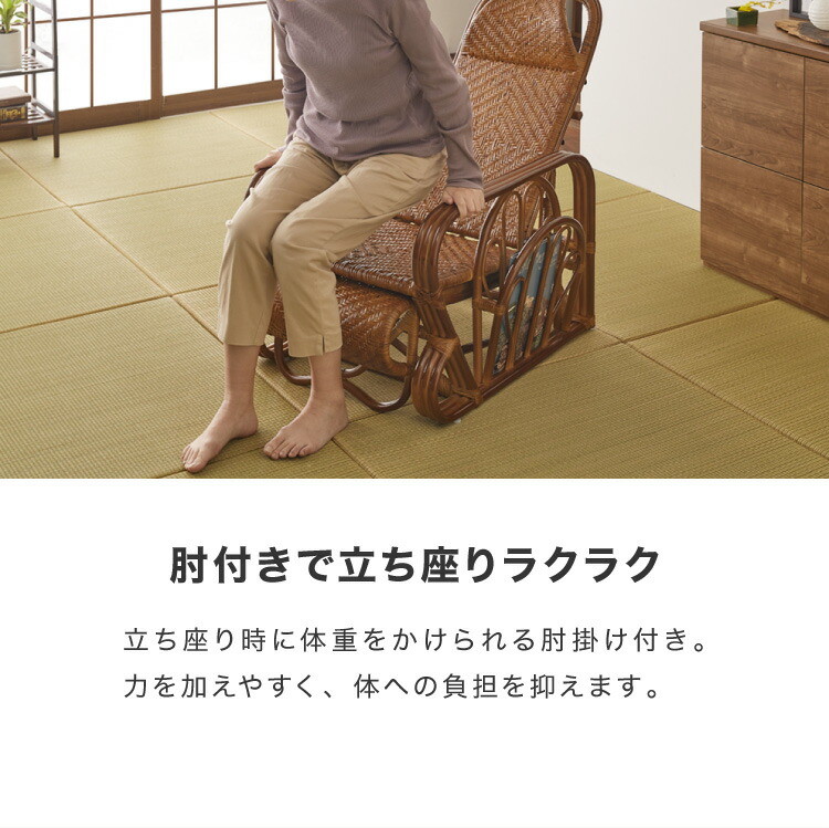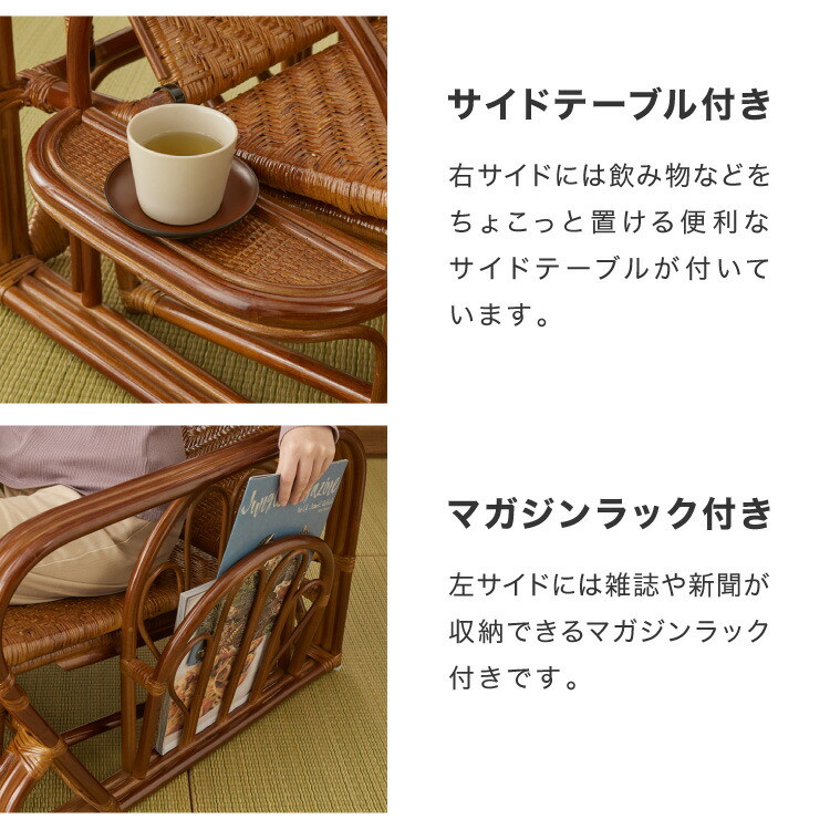 天然籐リクライニングチェア 完成品 マガジンラック サイドテーブル付 ラタン チェア 座椅子 イス 肘付き ソファ