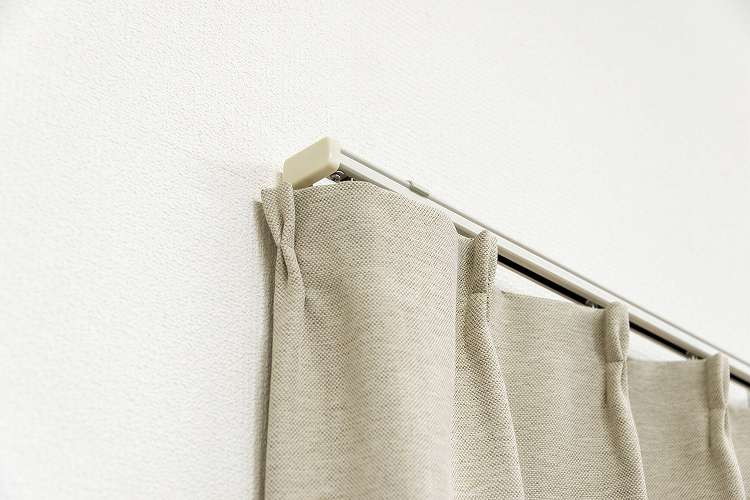 サイドユニット付きの静音カーテンレール。横からの光漏れを防ぎ、開閉時の音を約15%カット。ドライバー1本で取付ができます。