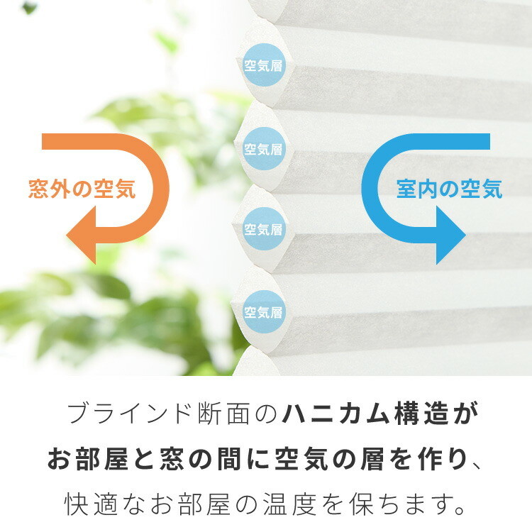 ハニカム構造により夏は断熱、冬は保温効果を発揮し、お部屋の冷暖房効率を高めることができます。
